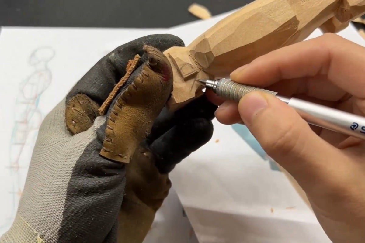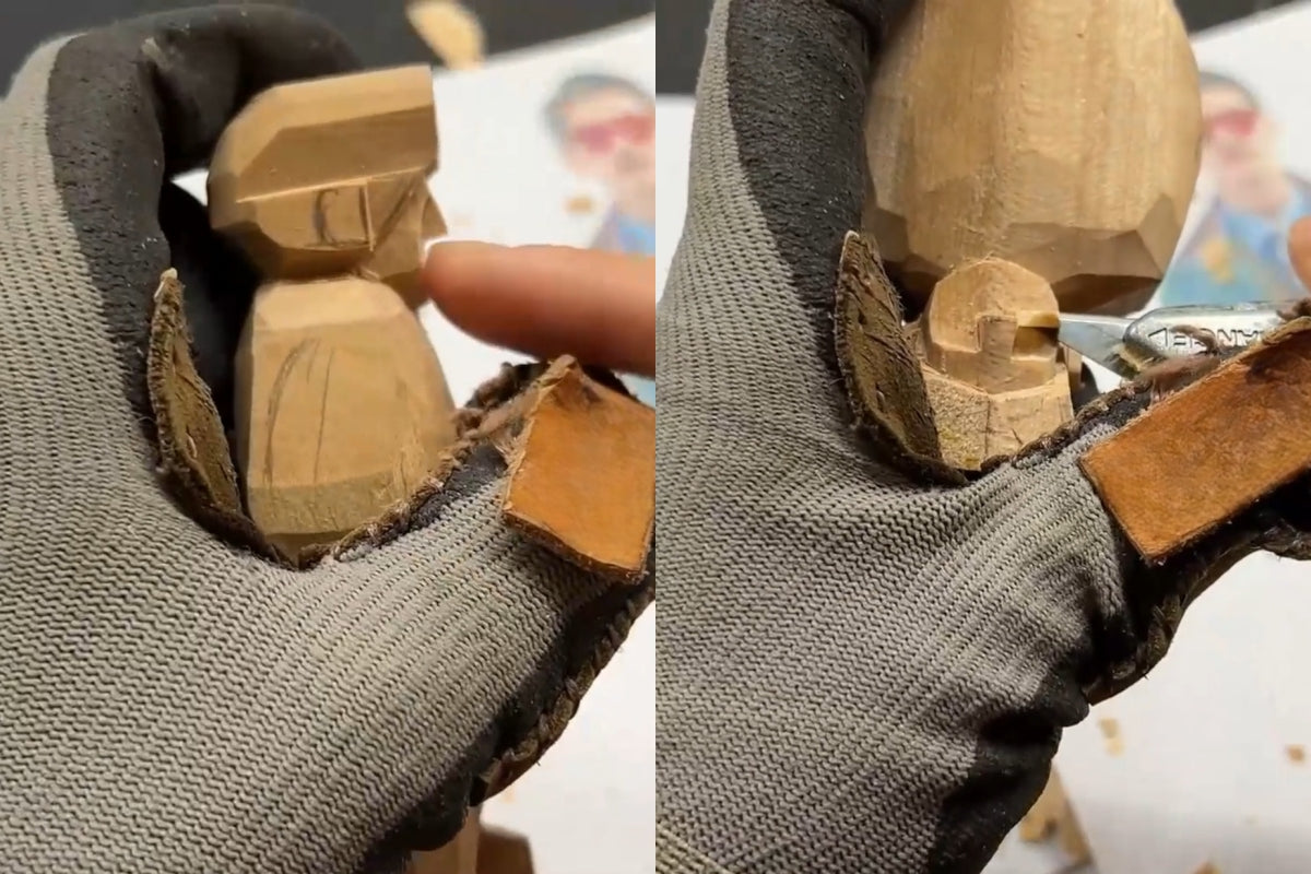 The wooden figure we’re making here has a simplified facial style—its only major depth differences are the nose and the face. If you want to go for a more realistic look in your Svn Futures gifts, we suggest practicing realistic head and face carving first. When you’re practicing, focus on adding details to sharpen your skills. Then, when you’re ready to make an actual wooden gift, you can simplify it. Over time, that’s how you’ll develop your own carving style.